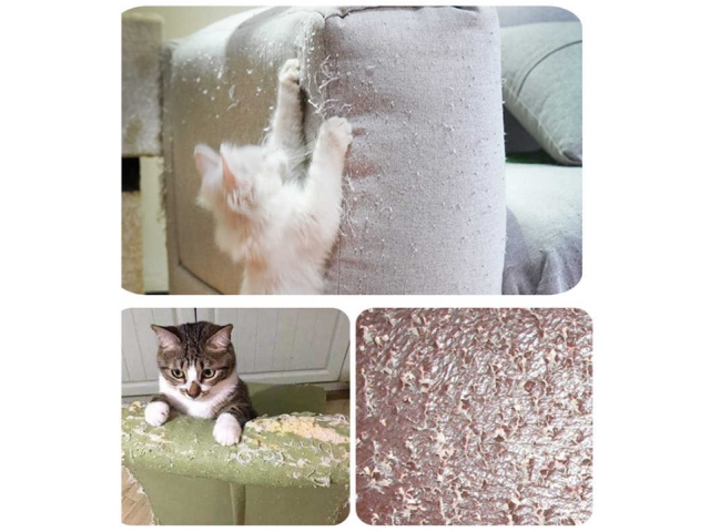 - Защищает обивку, двери, ковры, экраны и деревянные изделия от повреждений. кошачьими когтями.