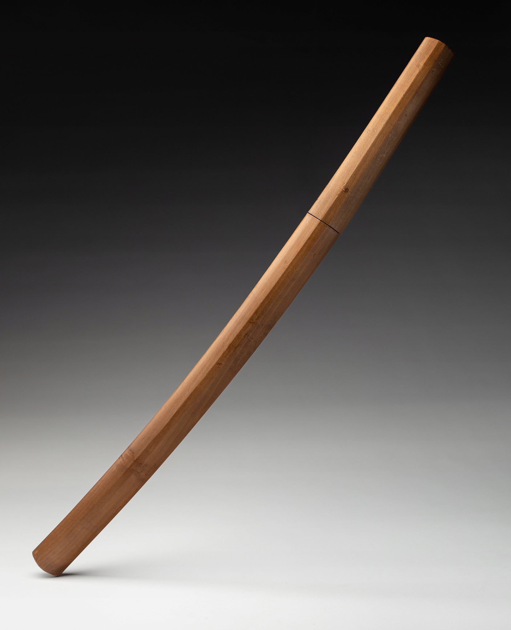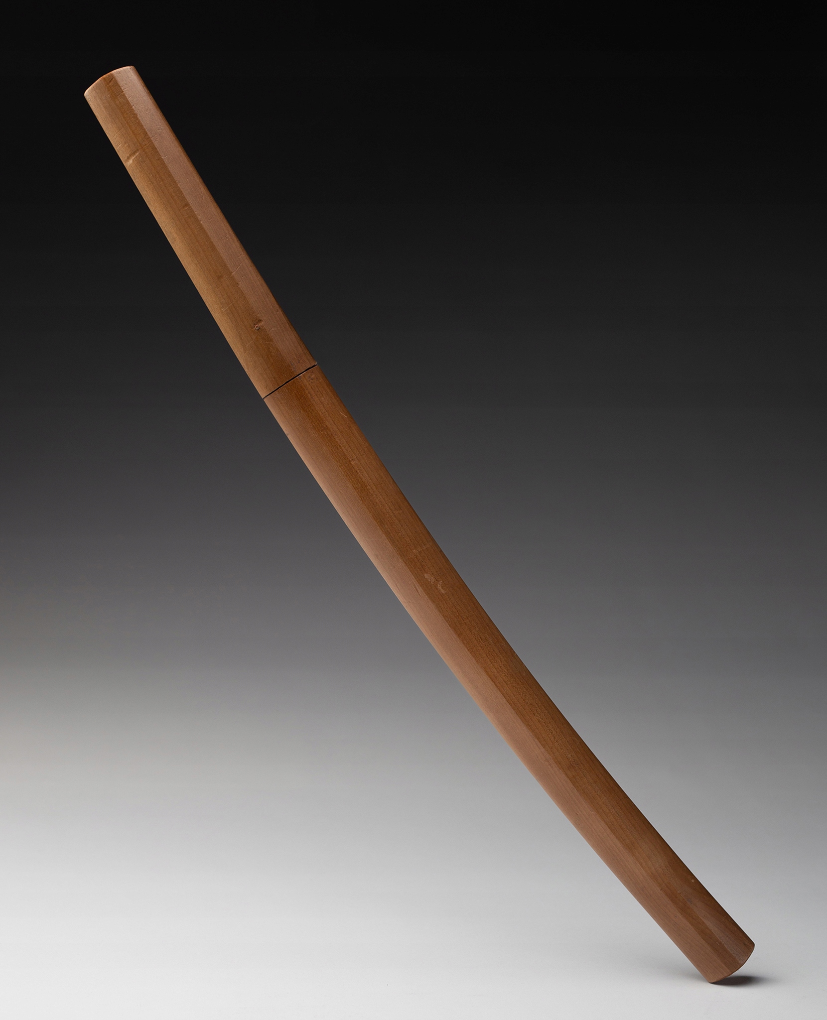 Настоящий японский меч вакидзаси - в раме из дерева павловния сирасая (очень точно подогнанная рама). Клинок в очень хорошем состоянии, линия хамона хорошо видна с обеих сторон, прямая. Клинок очень острый, кончик меча острый и не сколов. Медная перегородка, аккуратно очищенная. Голяшка накаго с одним отверстием мэкуги, сравнительно короткая. Вполне вероятно, что предложенный вакидзаси был сделан из более длинной катаны, после того как она была повреждена в бою - исходный клинок был соответственно укорочен.