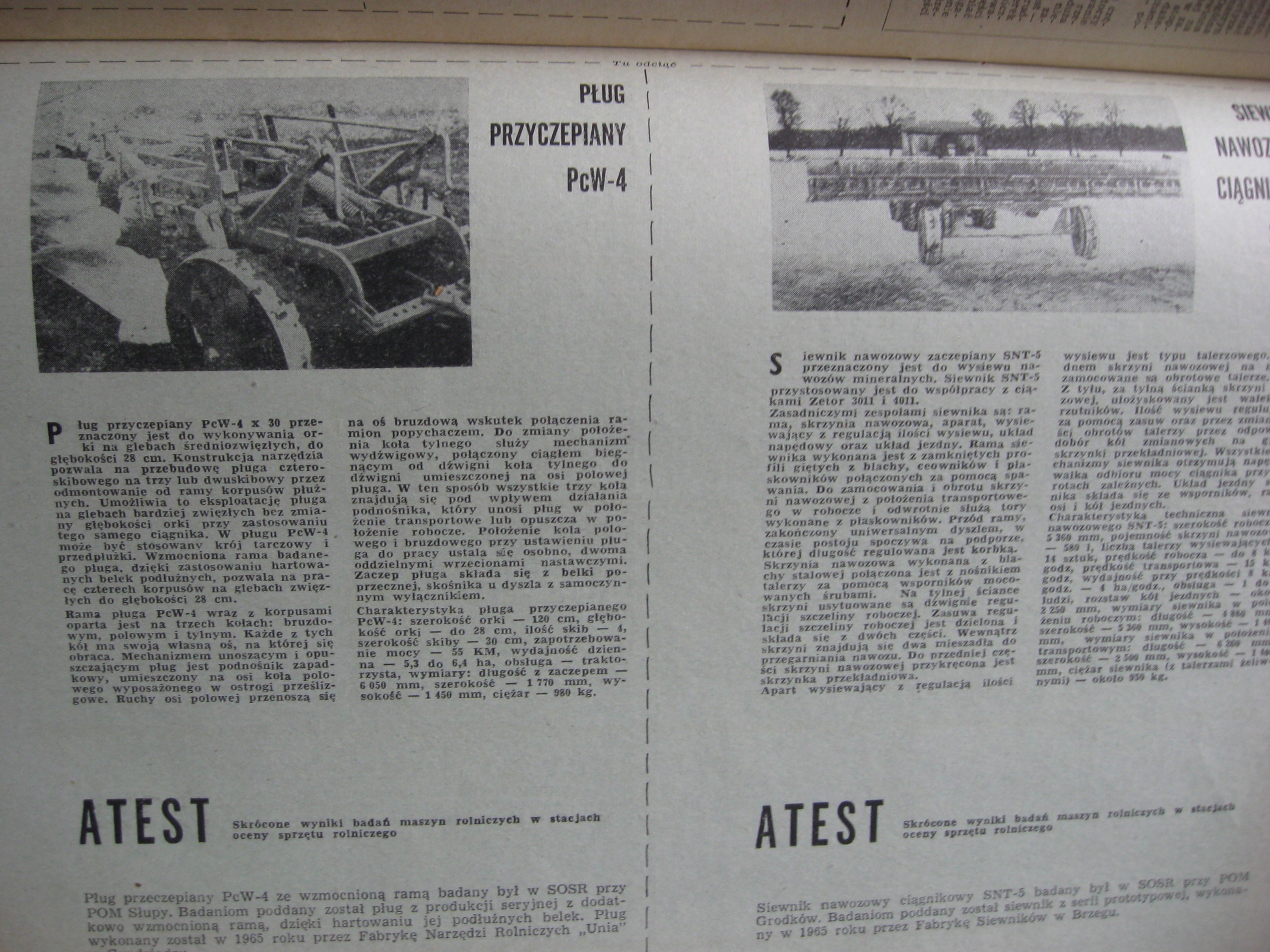 MECHANIZACJA ROLNICTWA Atest: Pług i siewnik 11/1966