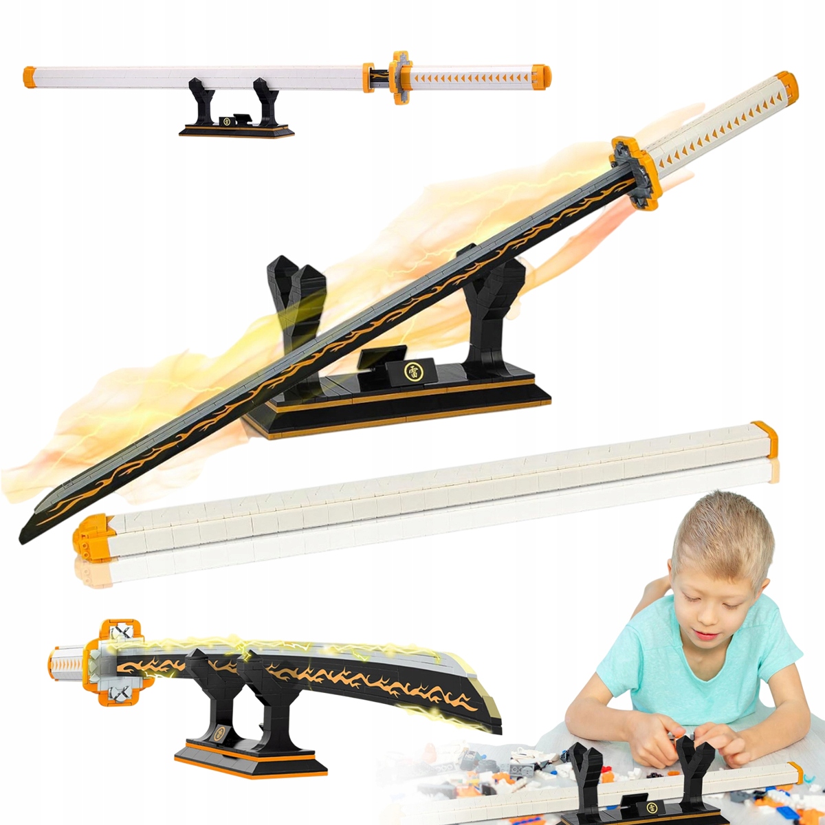 ✨ Этот меч Катана содержит 956 блоков, доставляется с влагалищем и подставкой. Этот меч Zenitsu сделан из высококачественных блоков.