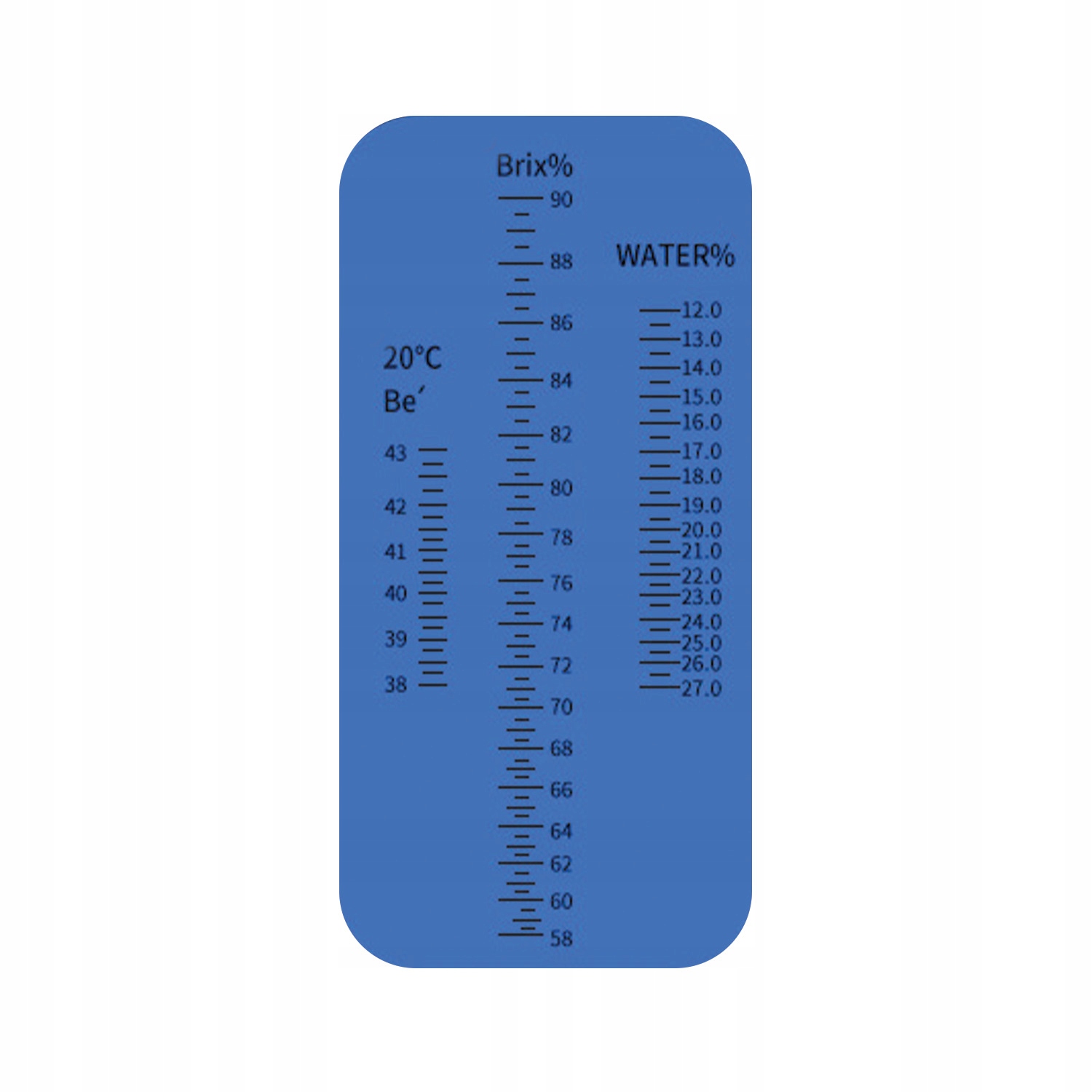 Наши рефрактометры оснащены тройной шкалой, что означает, что они универсальны и идеально подходят для многих применений. Измерение концентрации сахара по шкале Брикса, содержания воды в растворе и плотности раствора Be° (Боме) становится интуитивно понятным и точным. Независимо от того, являетесь ли вы пчеловодом, проверяющим мед, или ученым, проверяющим содержание воды в растворе,наши рефрактометры удовлетворят ваши потребности.