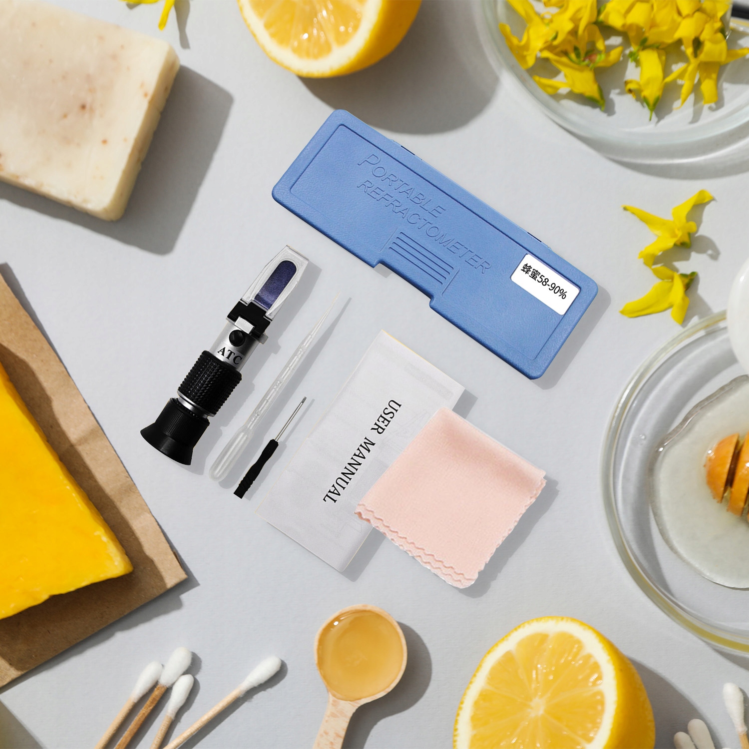 Мед Рефрактометр Сахар Метр ATC Калібрування вимірює ГУСТИНА ВОДА ЦУКОР