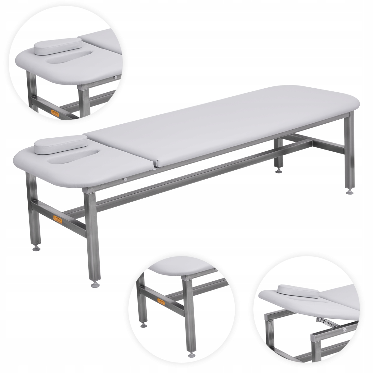Обеспечьте своим пациентам беспрецедентный комфорт и безопасность благодаря медицинским кушеткам Medic, которые являются ключевым элементом оснащения каждого медицинского и процедурного кабинета. Эти универсальные диваны, созданные для профессионалов, сочетают в себе непревзойденную долговечность и элегантность благодаря использованию в их конструкции матовой нержавеющей стали. Нержавеющая сталь, известная своей устойчивостью к коррозии, простотой очистки и исключительной долговечностью, гарантирует, что эти кушетки выдержат экстремальные условия работы и интенсивное использование, становясь надежной опорой в любой практике.