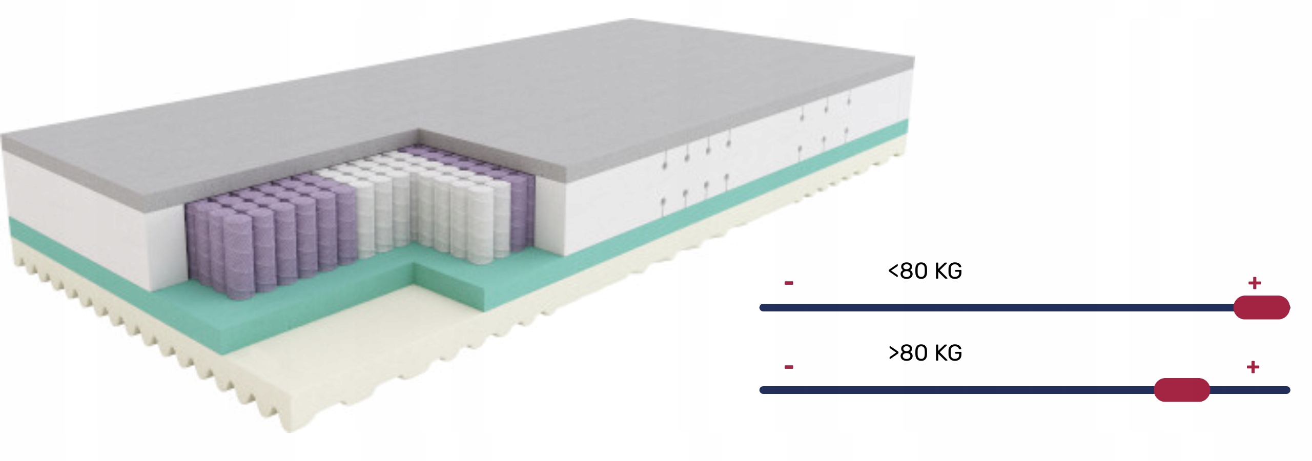"+" означает более высокую жесткость матраса на шкале.