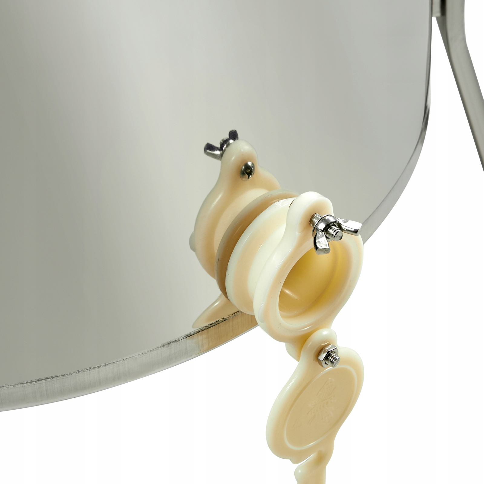 Изготовление из нержавеющей стали позволяет легко очищать медогонку из садового шланга после каждого использования и не ржавеет.