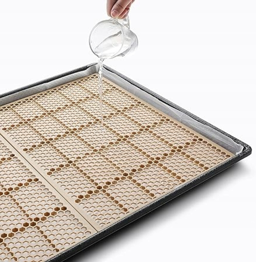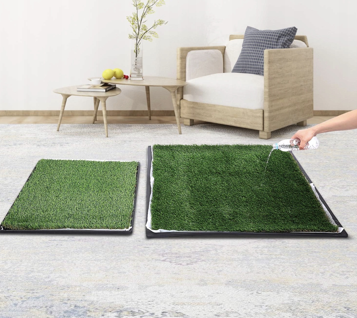 Тренировочные коврики размером 90 × 60 см чрезвычайно впитывают влагу и плотно прилегают, идеально подходят для быстрого впитывания влаги. При необходимости вы можете заказать дополнительные на Amazon.