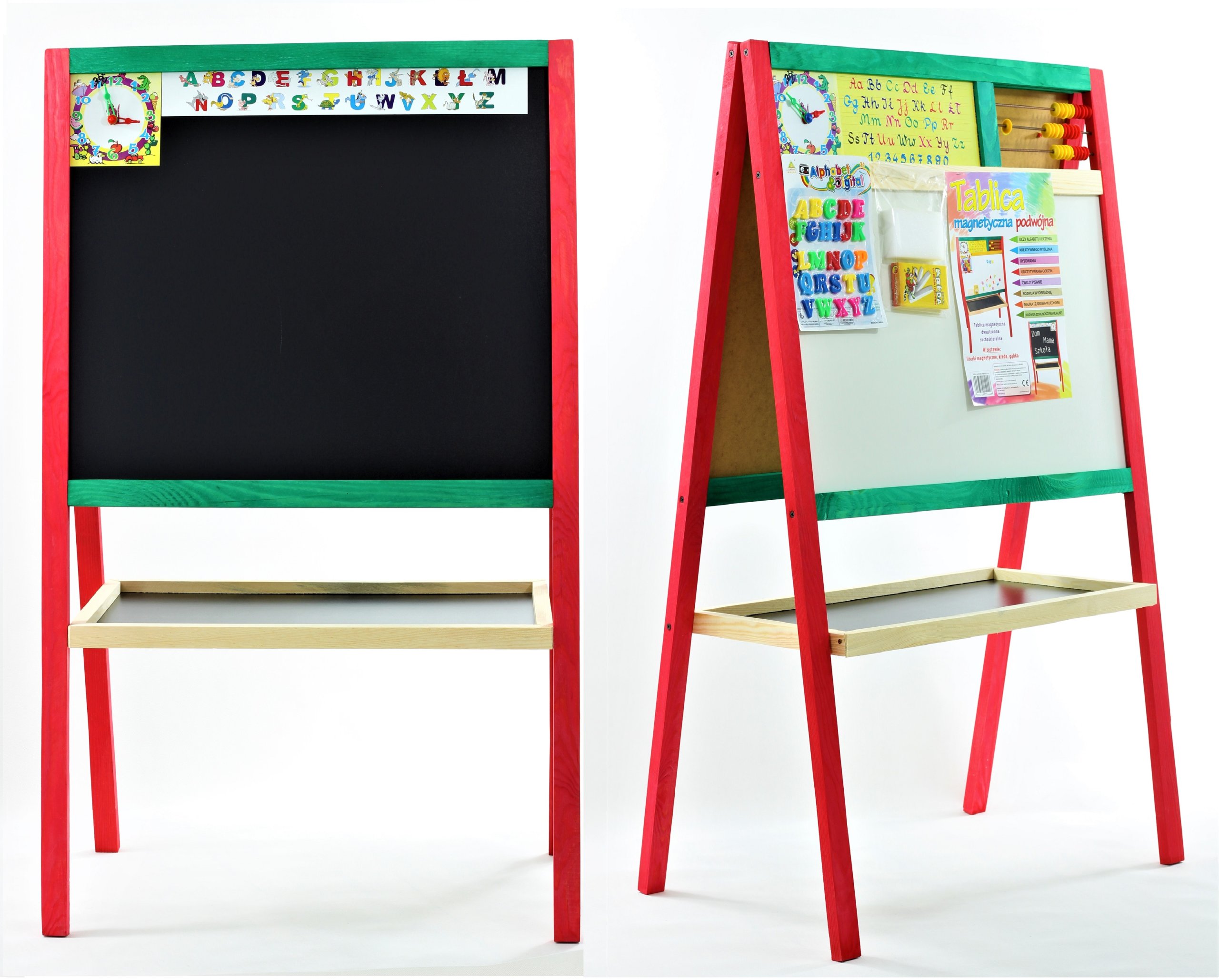 <ли>Двусторонняя магнитная/стираемая доска с полкой и аксессуарами доставит массу удовольствия вашему ребенку.