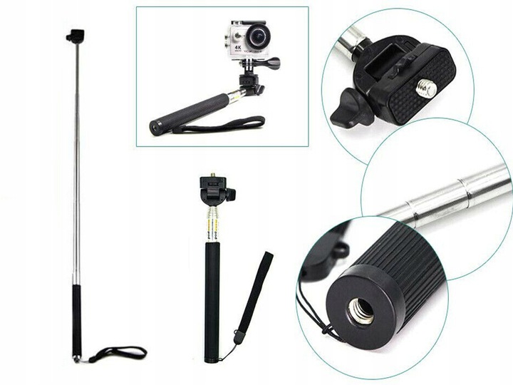 Монопод изготовлен из алюминия. На одном конце имеется подвижная головка со стандартной резьбой 1/4" (благодаря переходнику, входящему в комплект, можно монтировать камеры других производителей), другой конец оснащен резиновой ручкой и металлической резьбой, позволяющей вам нужно подключить монопод к другим креплениям.