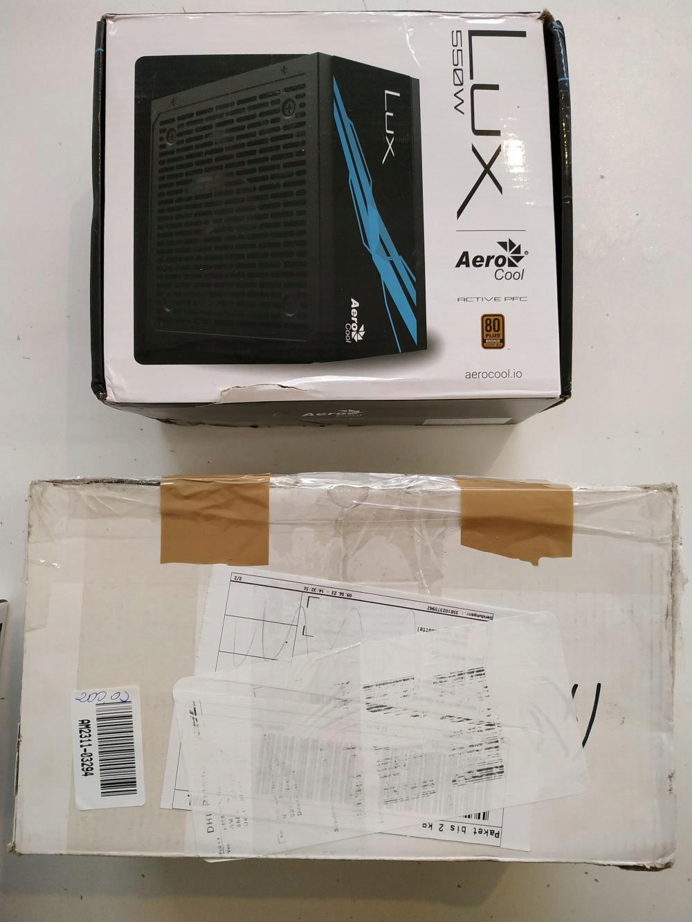 - AeroCool Lux550 Компьютерный блок питания мощностью 550 Вт – сильно раздавлен.