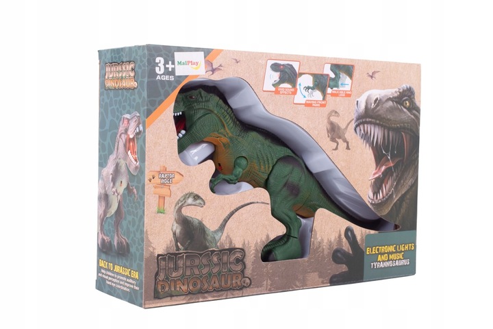 Динозавр свет, звук Интерактивный динозавр – отличный подарок для любителей этих существ. Световые и звуковые эффекты подарят много часов удовольствия! После активации большой динозавр начинает делать шаги и реветь. Световые эффекты, например сверкающие глаза, только усиливают эти необычные впечатления.