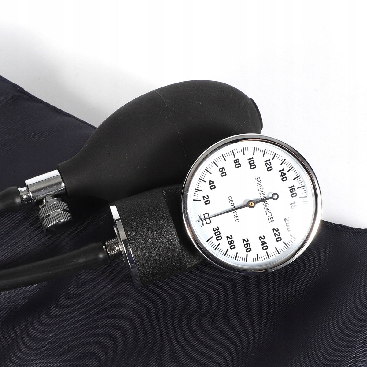 ● Спецификация продукта: содержит один анероидный датчик давления, вентиляционный клапан и насосную грушу с прикрепленным 70-сантиметровым стетоскопом, включенным в удобный черный чехол с молнии.