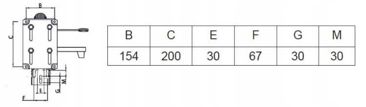 МЕХАНІЗМ ККМ 25 - синхронний з розсувним сидінням, крок 154х200 мм.