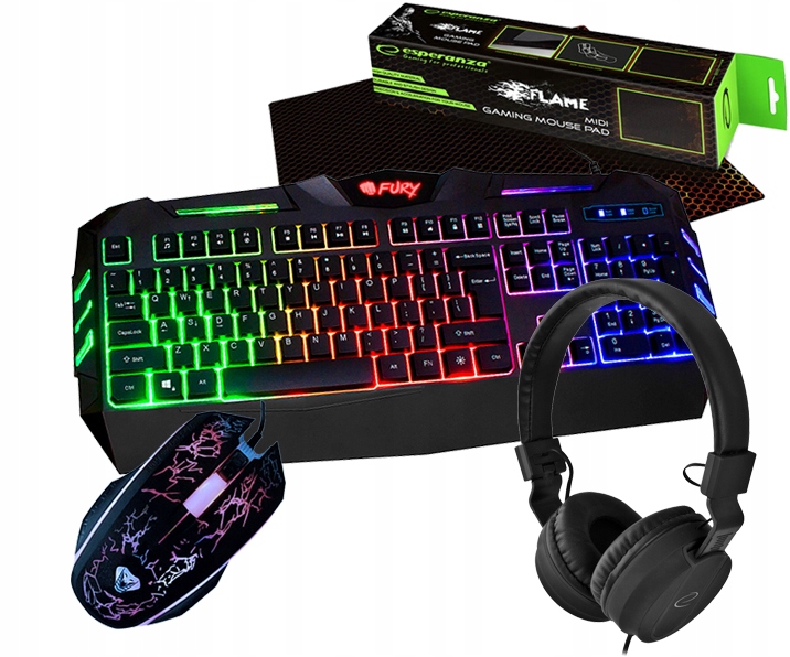 Фирменный набор для геймеров Игровая клавиатура FURY SPITFIRE с усиленной подсветкой + коврик + мышь + наушники