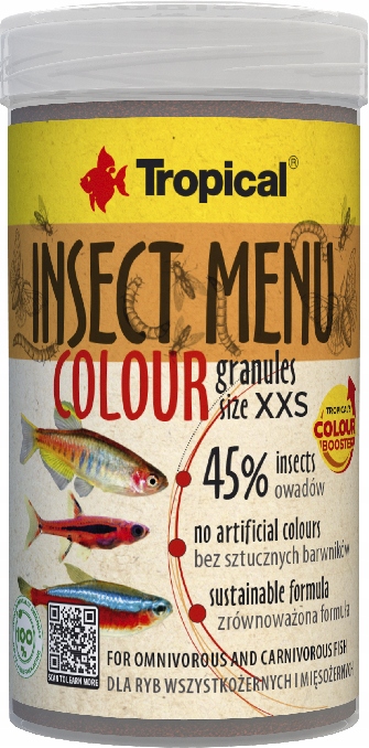 Позаботьтесь о интенсивных цветах, здоровье и состоянии вашей наименьшей декоративной рыбы! Цветные гранулы в меню. Идеально подходит для видов с небольшим мундштуком.