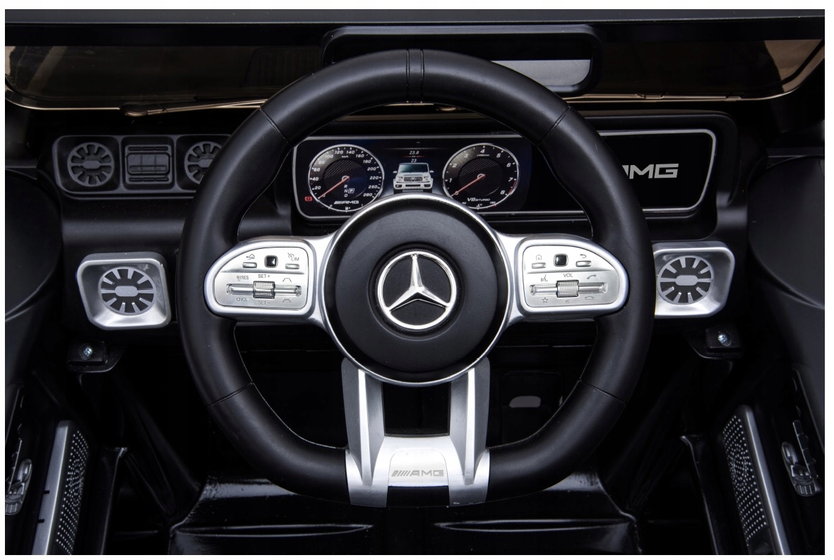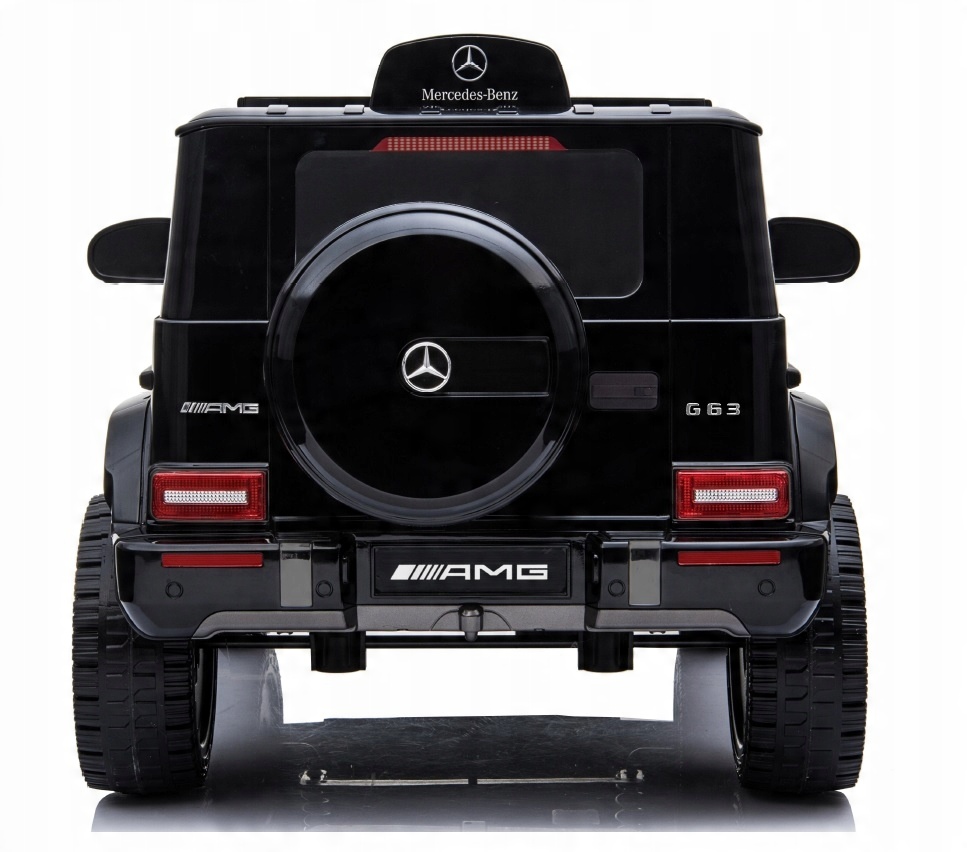 Автомобиль Mercedes-Benz G63 является транспортным средством с аккумуляторным питанием по ЛИЦЕНЗИИ MERCEDES. В автомобиле имеются двери, которые открываются в обе стороны. Он приводится в движение двумя мощными электродвигателями, питаемыми от аккумулятора 12 В, 7 Ач. Автомобиль оснащен звуковыми эффектами, активируемыми кнопками, входом для MP3-плеера, портом USB, портом TF, регулятором громкости, светодиодными фонарями, мягким сиденьем из эко-кожи и мягкими колесами из пены EVA. Доступны 3 скорости движения. Безопасные уроки вождения проводятся с помощью прилагаемого пульта дистанционного управления 2,4G, который дает родителю полный контроль над автомобилем.