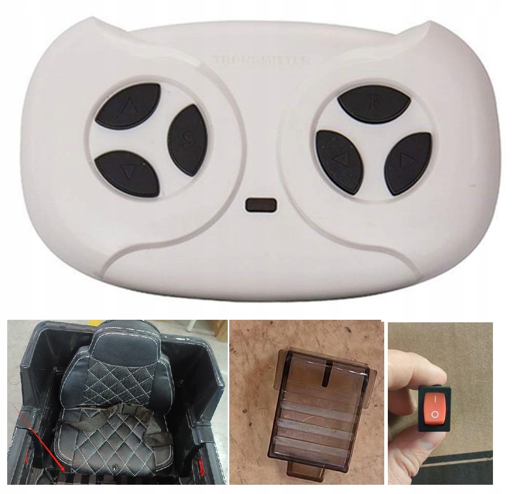 - Автомобиль оборудован переключателем 0/1 (0 – ручное вождение, 1 – вождение с дистанционным управлением). Этот переключатель расположен под сиденьем (виден на фото ниже – отмечен красной стрелкой). Перед сборкой автомобиля, прежде чем затягивать сиденье, снимите пластиковую крышку и затем переключитесь на 1 – если вы хотите активировать функцию движения с помощью пульта дистанционного управления. Если вы хотите переключиться на ручное вождение с помощью педали, переключитесь на «0».