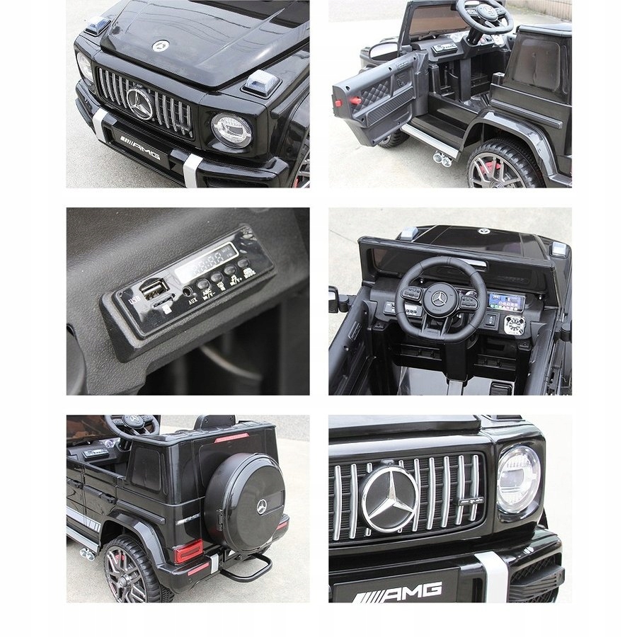Автомобиль Mercedes-Benz G63 является транспортным средством с аккумуляторным питанием по ЛИЦЕНЗИИ MERCEDES. В автомобиле имеются двери, которые открываются в обе стороны. Он приводится в движение ЧЕТЫРЕмощными электродвигателями, питаемыми от аккумулятора 12 В, 7 Ач. Транспортное средство оснащено звуковыми эффектами, активируемыми кнопками, USB-портом, регулятором громкости, светодиодными фонарями, мягким сиденьем из эко-кожи и мягкими колесами из пены EVA. Доступны 3 скорости движения. Безопасные уроки вождения проводятся с помощью прилагаемого пульта дистанционного управления 2,4G, который дает родителю полный контроль над автомобилем.