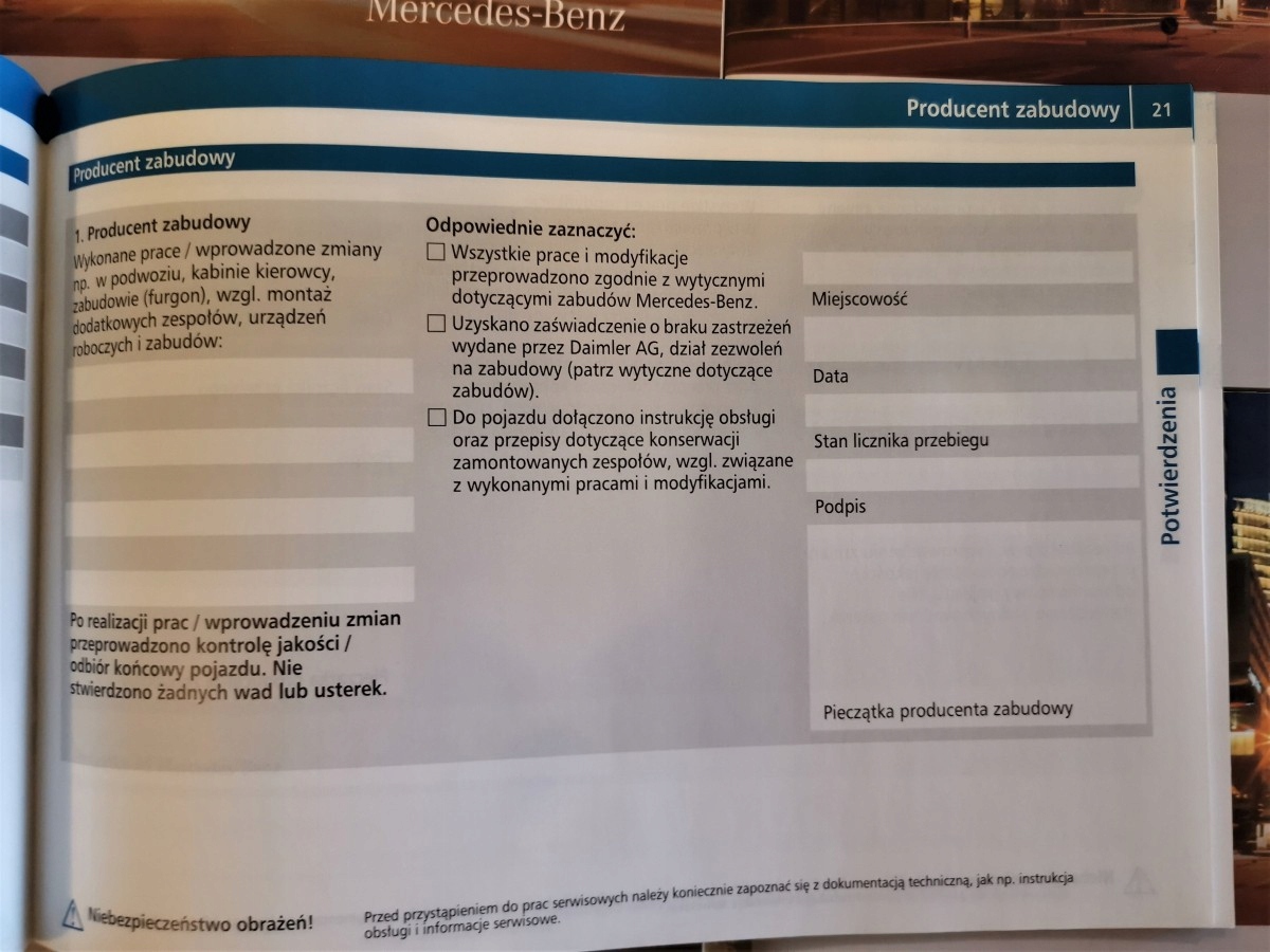 Сервисная книга Mercedes Vario Polska