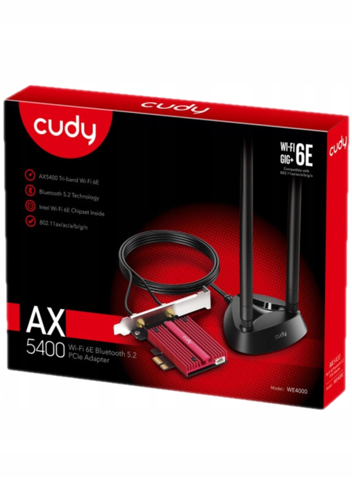 Сетевая карта Cudy WE4000. Сетевая карта Cudy WE4000 — это устройство, предназначенное для подключения компьютера или других устройств к беспроводной сети (Wi-Fi) с высокой скоростью передачи данных и расширенными возможностями, улучшающими производительность сети.