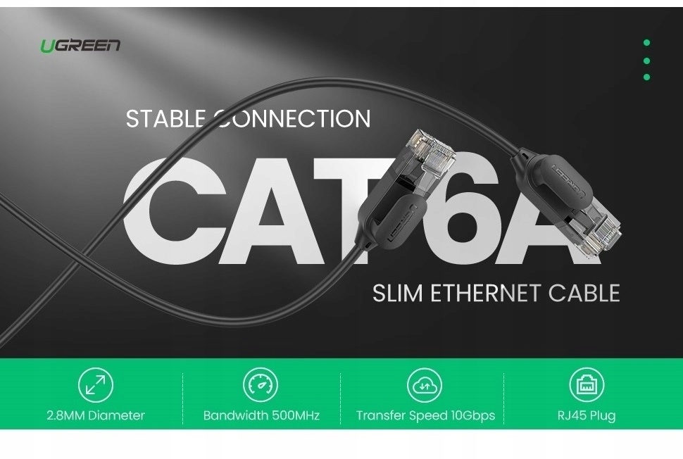 Тонкий сетевой кабель UGREEN RJ45 Cat.6A Ethernet