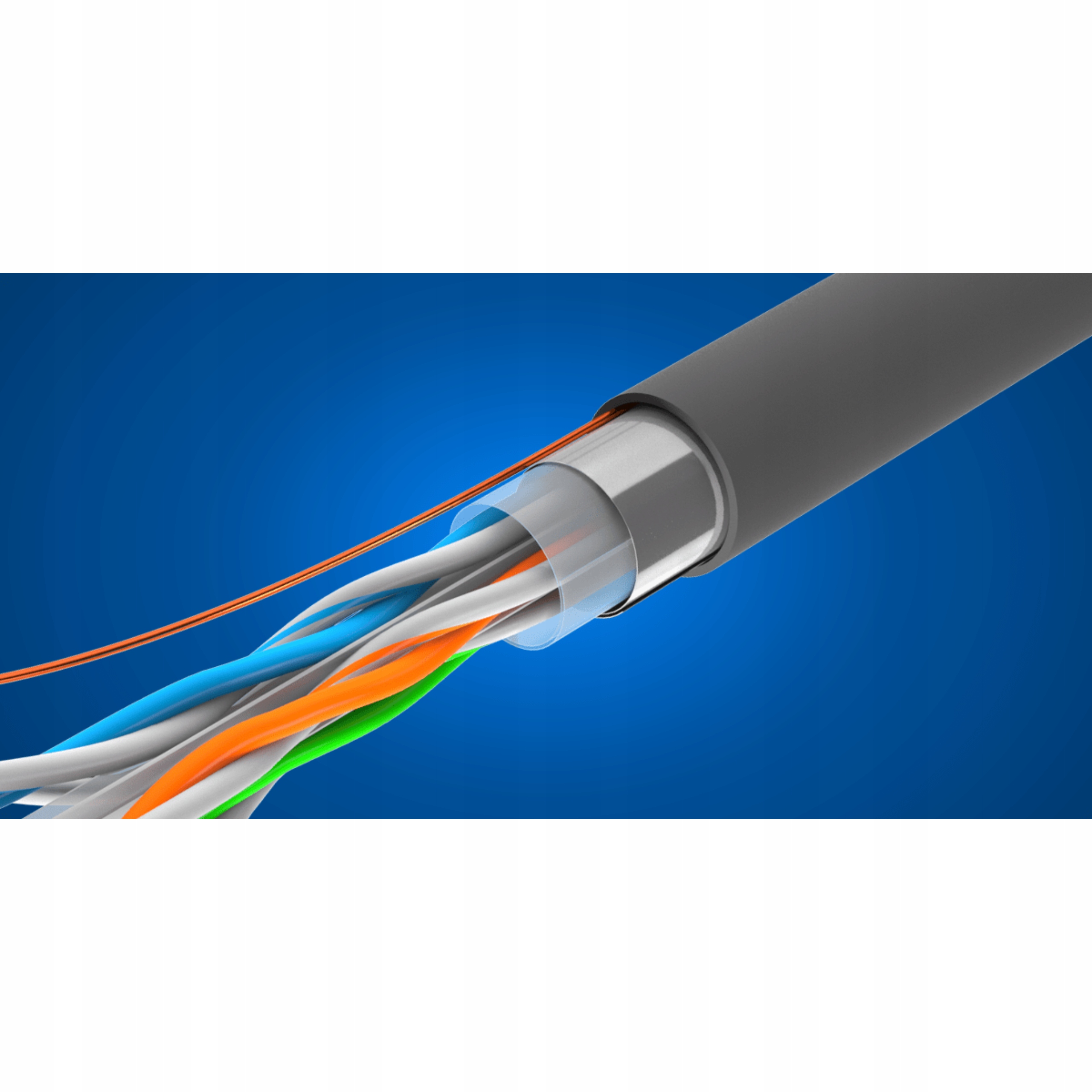 Кабель изготовлен из полностью меди (CU), что означает отсутствие примесей алюминия и гораздо лучшие параметры передачи по сравнению с кабелями CCA (омедненными). Полностью медные проводники гарантируют низкое сопротивление, большую долговечность и стабильное сетевое соединение на больших расстояниях. Это решение рекомендуется для профессиональных и требовательных установок.