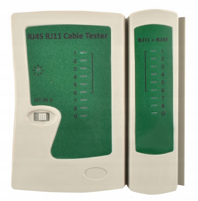 - КАБЕЛЬНЫЙ ТЕСТЕР - предназначен для тестирования кабелей UTP, FTP, STP и телефонных кабелей RJ12, RJ11. 9 световых индикаторов (светодиодов) указывают на правильность подключения, позволяют обнаружить неправильные подключения, короткие замыкания и любые обрывы электропроводки.