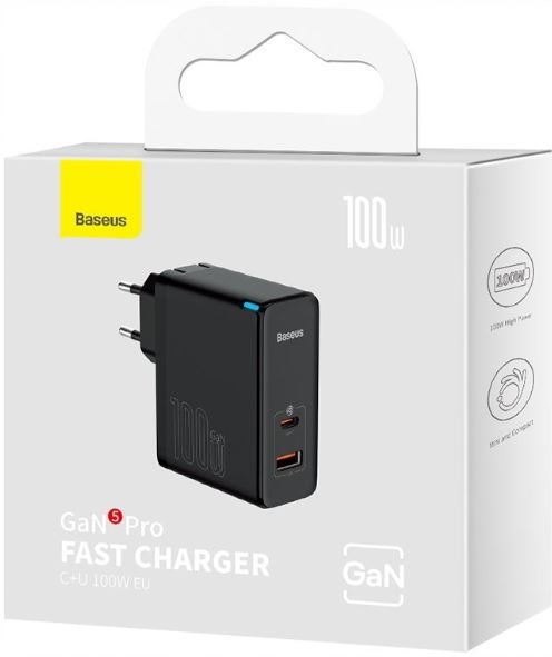 Baseus GaN5 Pro быстрый универсальный GaN USB Type C / USB 100W PD3.0, QC4.0+, AFC черный (CCGP090201)