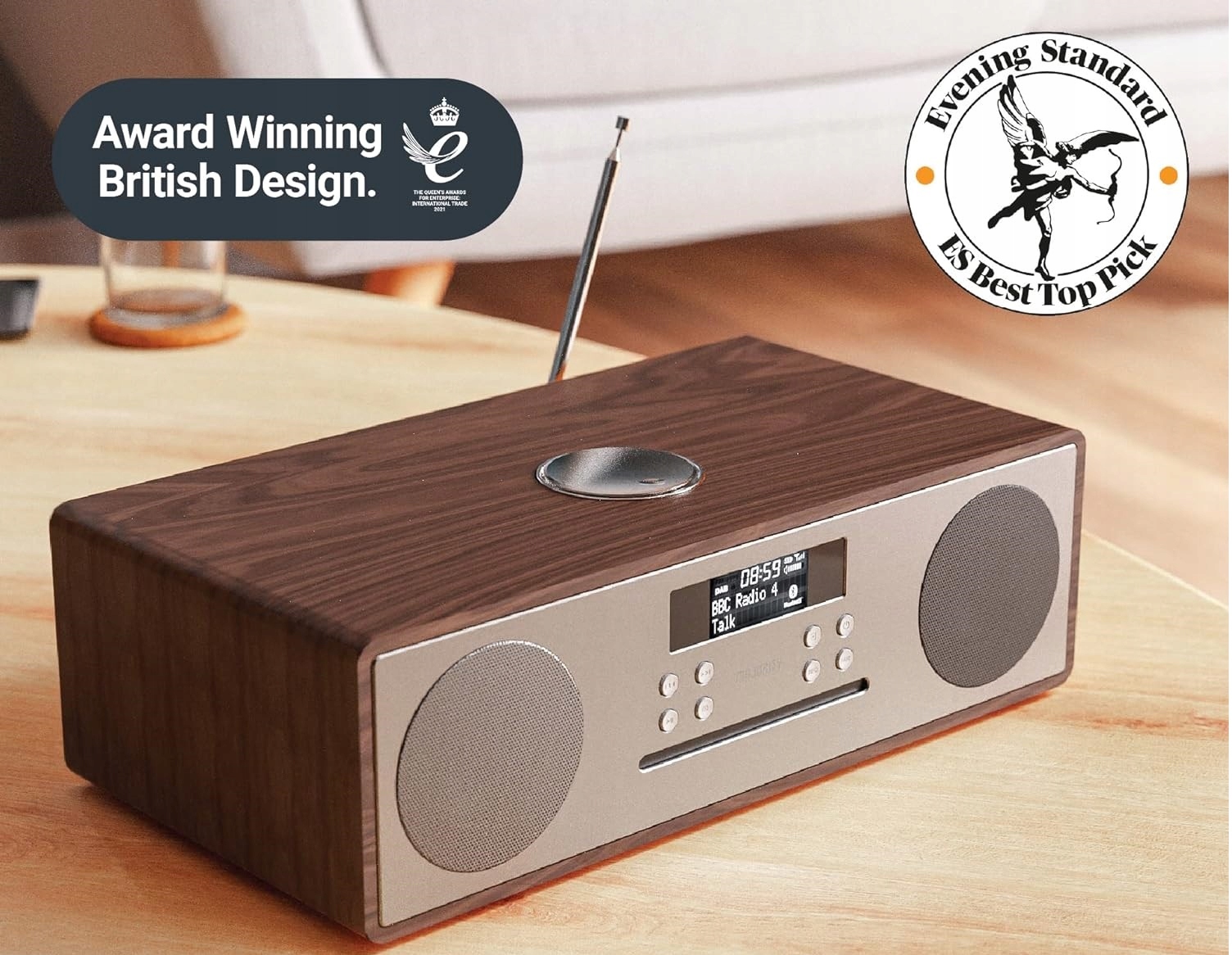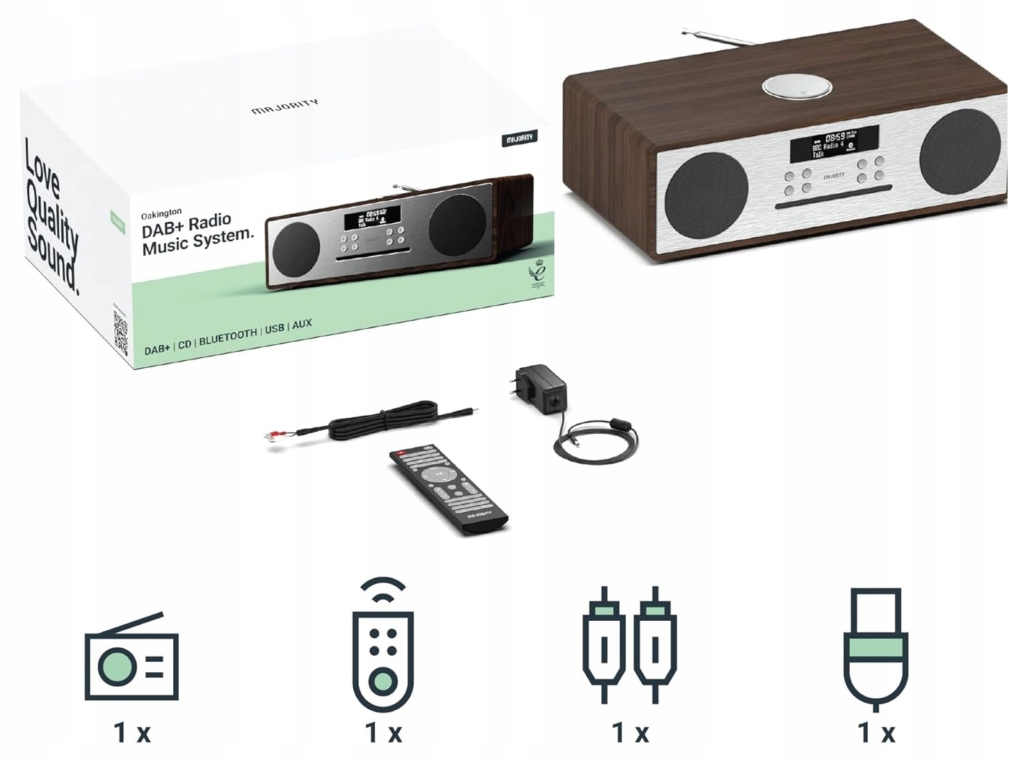Цифровое радио Majority Oakington DAB/DAB+/UKW – проигрыватель компакт-дисков – Bluetooth – стереодинамики – пульт дистанционного управления – двойной вход USB/зарядка – вход AUX и USB (дуб)