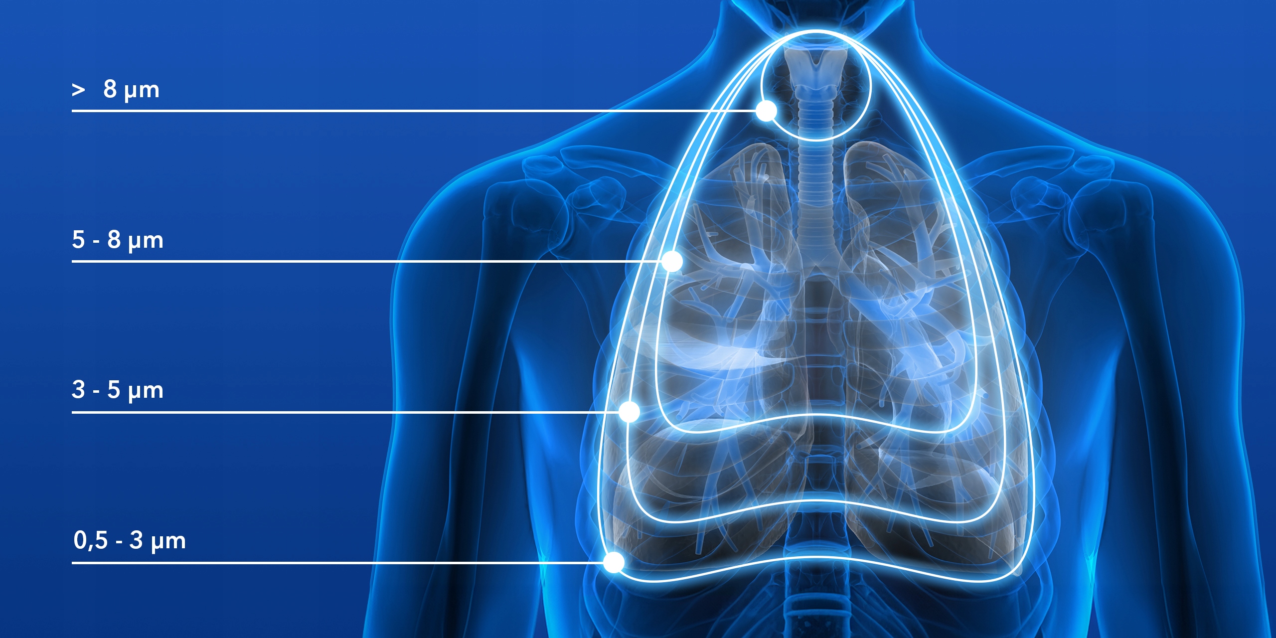 Небулайзерные ингаляторы распыляют препарат в виде аэрозоля, состоящего из микроскопических частиц. Именно их размер определяет эффективность и результативность лечения, так как напрямую влияет на то, в каком отделе дыхательных путей пациента оседают вдыхаемые частицы и всасывается введенный препарат.