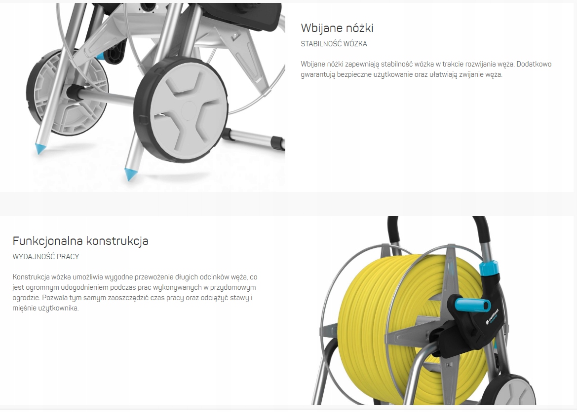 - конструкция тележки позволяет удобно транспортировать и хранить длинные отрезки шланга.