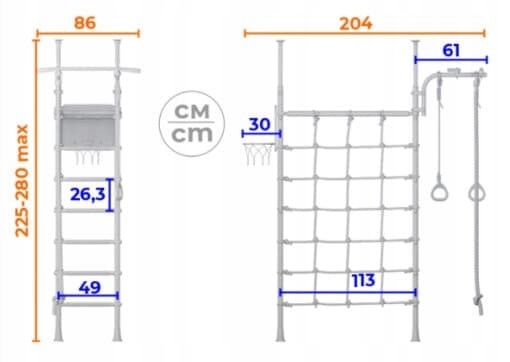Если вы не знаете, как организовать игровую комнату - набор Pegas - отличное решение. Благодаря этому у ребенка дома есть целая игровая площадка: вертикальная лестница, горизонтальная лестница, гимнастический стержень, качели, змея, веревка, круг и баскетбольная корзина. Есть отличное решение для детских комнат и спортивных комнат.