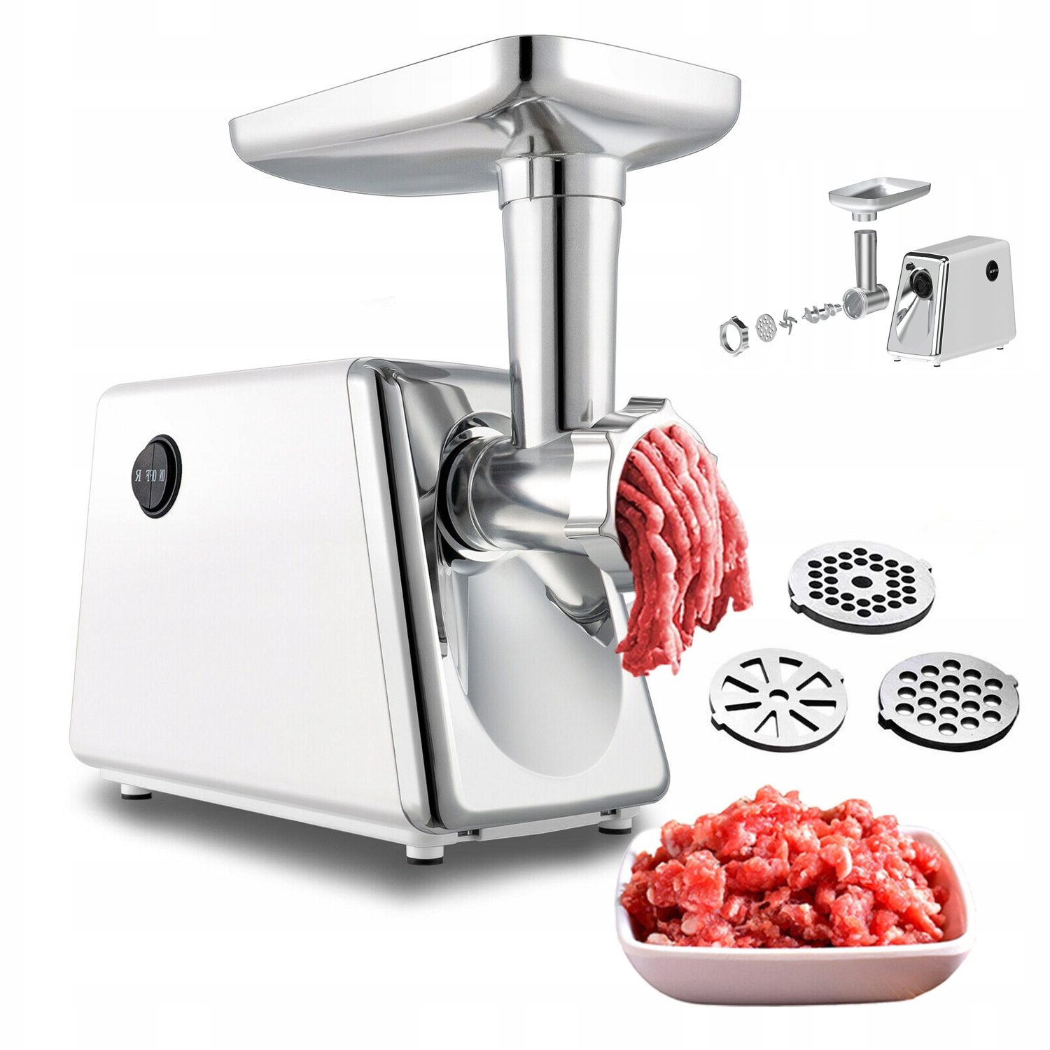 ➡ емкость и различные вложения h2> - Устройство имеет 3 перфорированных щита, толстых, средних и маленьких, благодаря тому, что у вас есть все варианты на выбор, будь то небольшое шлифование для колбасы, среднее измельчение для восхитительного соуса болоньезе или толстого шлифования для жаркого. Без необходимости постоянно дополнять мясо из режущей доски.