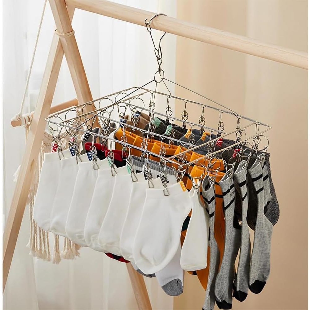 Металлическая подставка для носков с 36 зажимами, подходит для носков и нижнего белья.