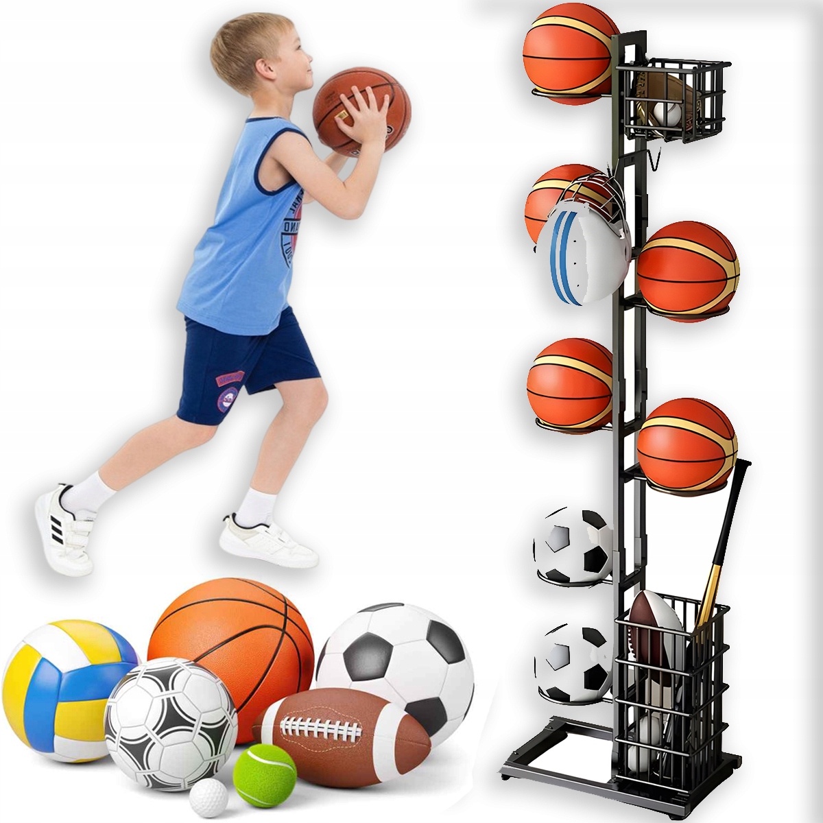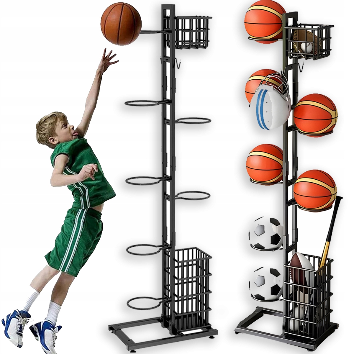 - - 🏀Изготовленный из стального каркаса, он нержавеющий, прочный и долговечный. Вертикальная конструкция отлично экономит пространство.