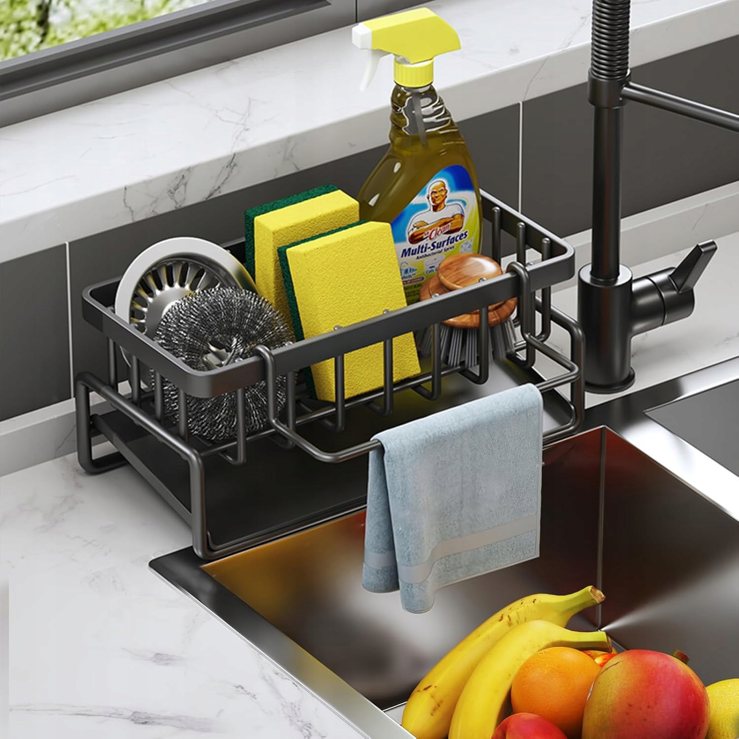 🗃️ Универсальное хранилище – Органайзер оснащен двумя практичными отделениями из нержавеющей стали, в которых можно разместить щетки, губки, кухонную утварь и аксессуары. Идеально подходит для организации хаоса у мойки!