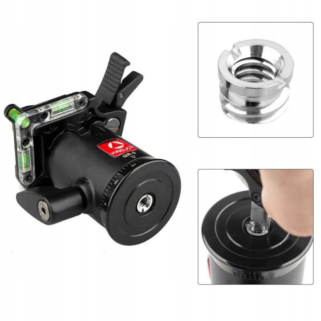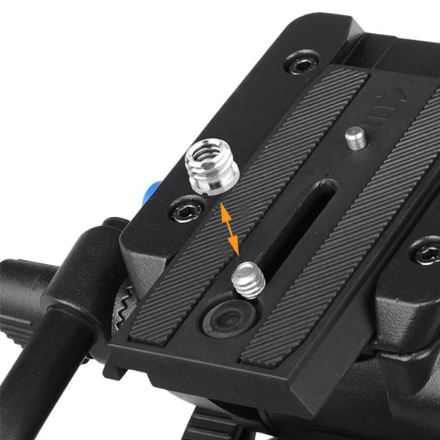 Мы предлагаем сокращение металла, что позволяет установить головку штатива с 3/8 -развязкой на присоединении, например, Монопод, на осветительном штативе с нитью 1/4 дюйма и другим штативом.