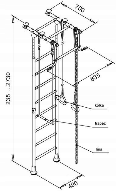 - комплектация: металлическая лестница, нескользящая штанга, веревка, кольца, трапеция