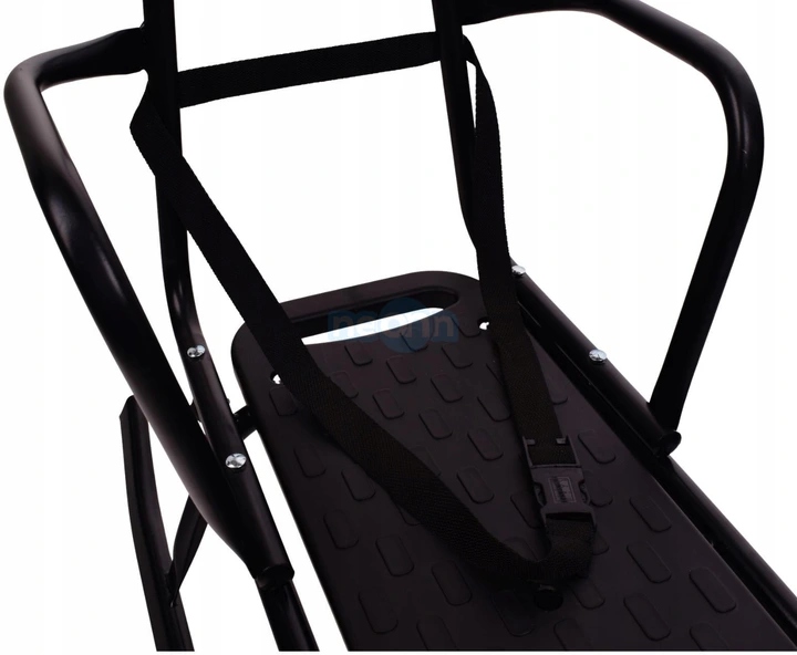 Сани изготовлены из бесшовной стальной трубы плоскоовального сечения для еще большей прочности, окрашены высококачественным порошковым лаком, который обеспечивает долговечность покрытия и устойчивость к повреждениям.
