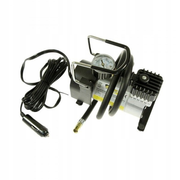 Он оснащен манометром с показаниями до 10 БАР. Кроме того, в нем имеется кабель для подключения к гнезду прикуривателя длиной до 300 см и воздушный шланг длиной 100 см с разъемом.