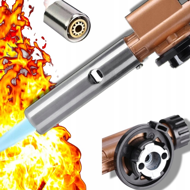Многофункциональная ручная газовая горелка с пьезоэлектрическим предохранителем для газа для газа. Проводящие вставки из прочных материалов. Горелка имеет металлический клапан, а кузов
