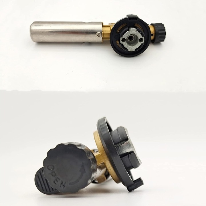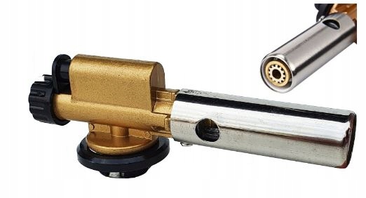 Многофункциональная ручная газовая горелка с пьезоэлектрическим предохранителем для газа для газа. Проводящие вставки из прочных материалов. Горелка имеет металлический клапан, а кузов