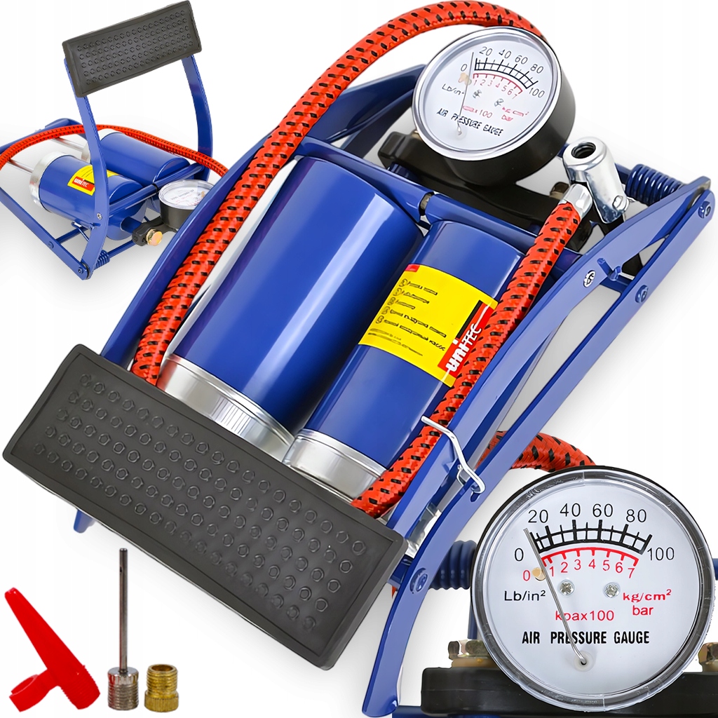 МЕТАЛЛИЧЕСКИЙ ДВУХПОРШНЕВОЙ НОЖНОЙ НАСОС ДЛЯ АВТОМОБИЛЬНЫХ ШИН, МАНОМЕТР ДЛЯ ВЕЛОСИПЕДА