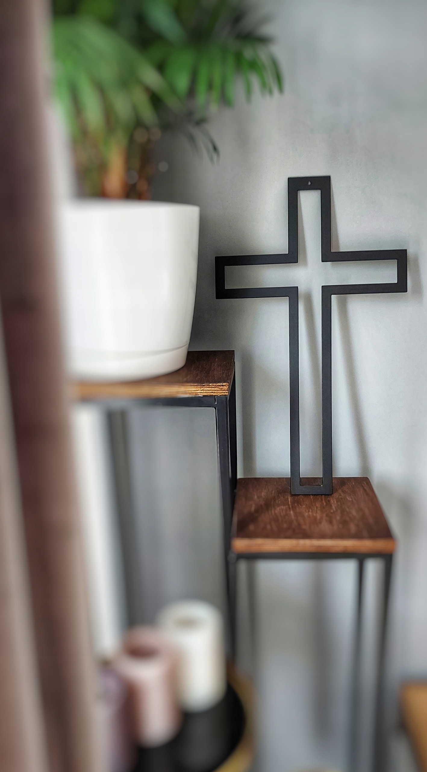 Металлический крест, чтобы повесить на стену, в промышленном стиле.