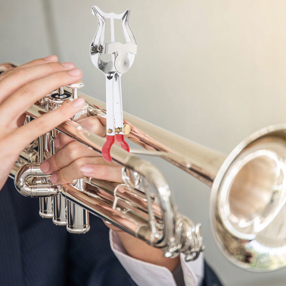 Эта лира для трубы имеет регулируемый зажим для надежного захвата небольших инструментов.
