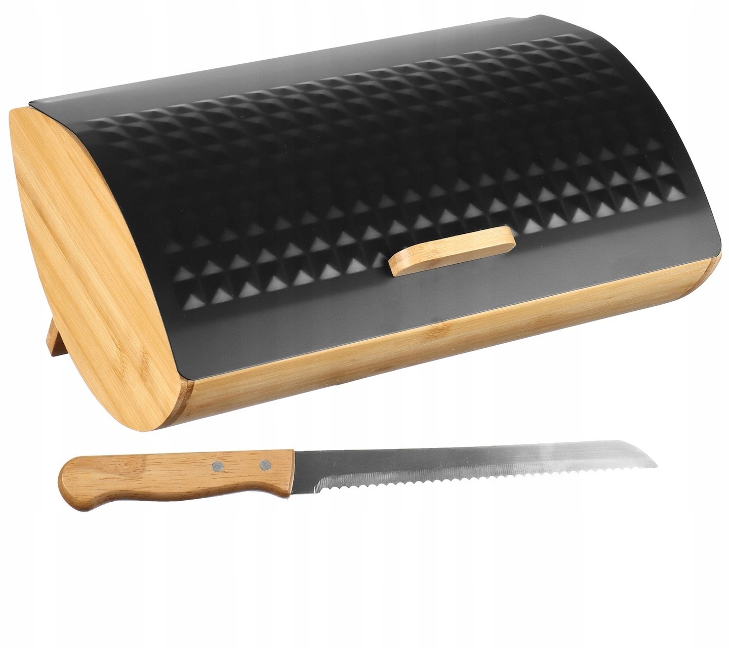 МЕТАЛЛИЧЕСКИЙ КОНТЕЙНЕР ДЛЯ ХЛЕБОПЕКАРКИ ХЛЕБНЫЕ БУЛКИ ЧЕРНЫЙ БАМБУК + НОЖ