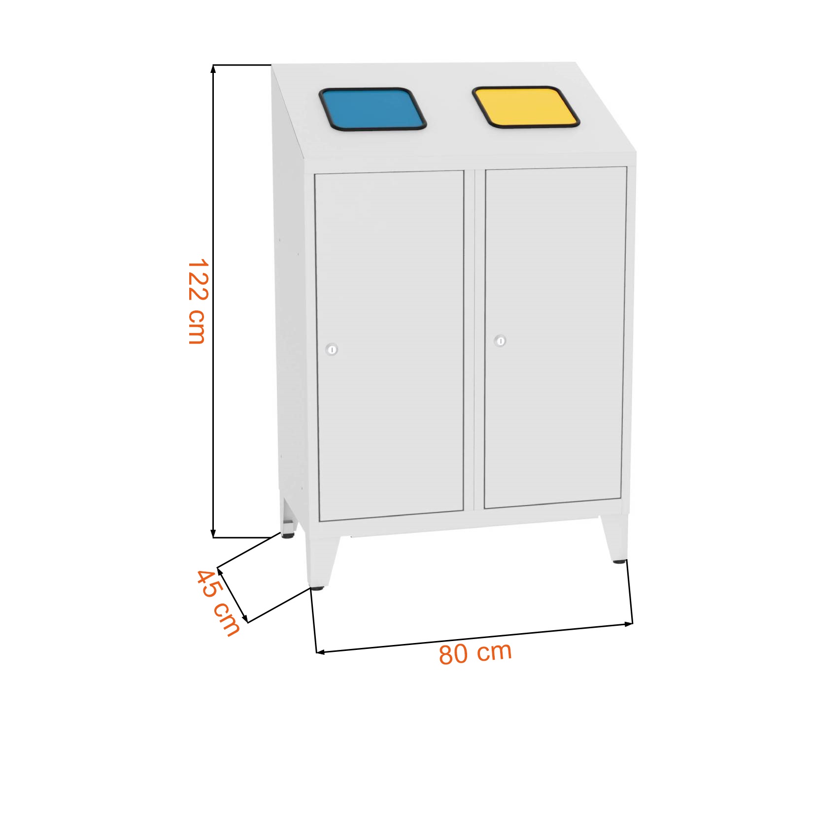 Контейнер для сортировки мусора MPO 02K с двумя контейнерами сочетает в себе функциональность и современность. Оборудован дверью с поворотным замком с возможностью дополнительной защиты навесным замком, обеспечивающим защиту от несанкционированного доступа. Самозакрывающиеся крышки сортировочного контейнера предотвращают распространение неприятных запахов, обеспечивая приток свежего воздуха. Внутри находятся съемные оцинкованные корзины емкостью 70 литров, адаптированные под стандартные сумки. Регулируемые ножки (0-10 мм) и цельный листовой металл (0,8-1,0 мм) подчеркивают качество изделия. Разработанный для внутреннего использования, идеально подходящий для офисов, школ или домов, он используется для разделения мусора, такого как пластик, бумага или стекло. Это элегантное и практичное решение для тех, кто заботится об окружающей среде.