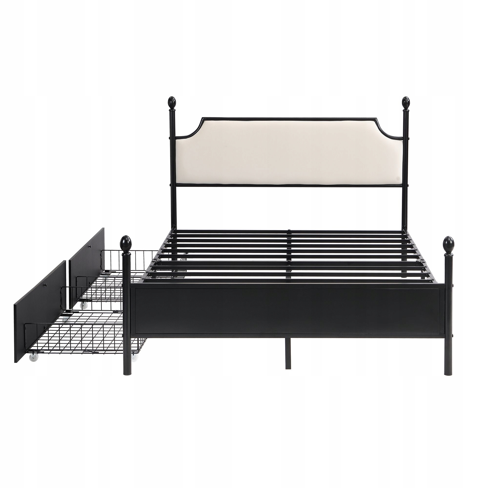 Современная металлическая кровать, кровати кроватей с рамой из планка, двуспальная кровать, рама кровати с подголовником, гостевая кровать, молодежная кровать для спальни, гостевая комната, с двумя ящиками, 140x200 см, черный