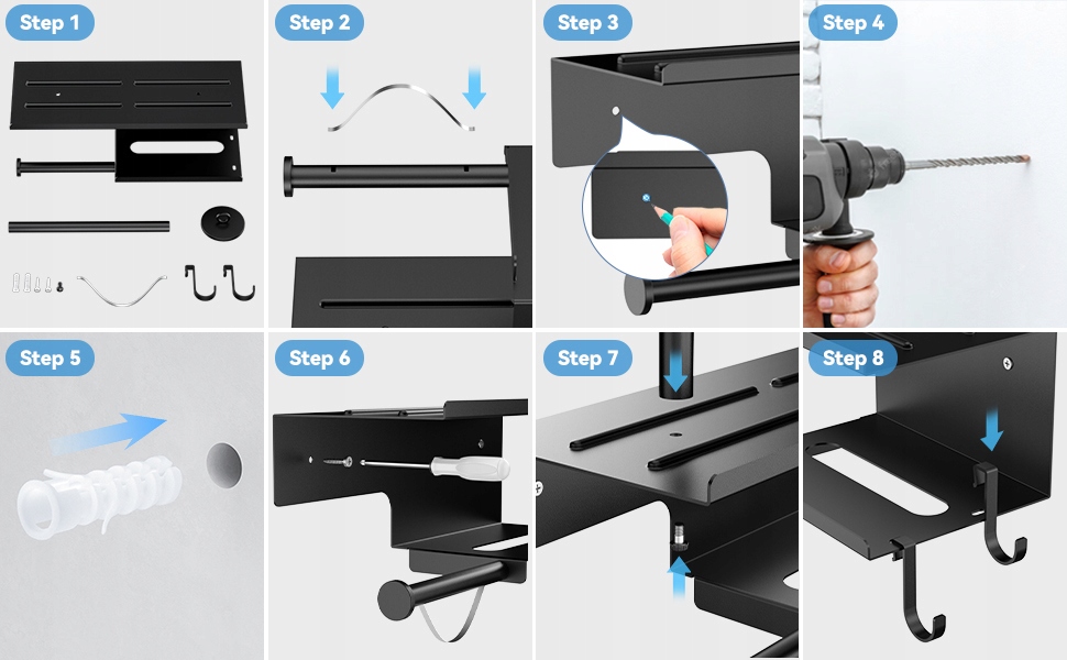 Современный держатель туалетной бумаги с полкой телефона, большая полка для носовых плат и 2 крючка для аксессуаров. Идеальное решение для каждой ванной!