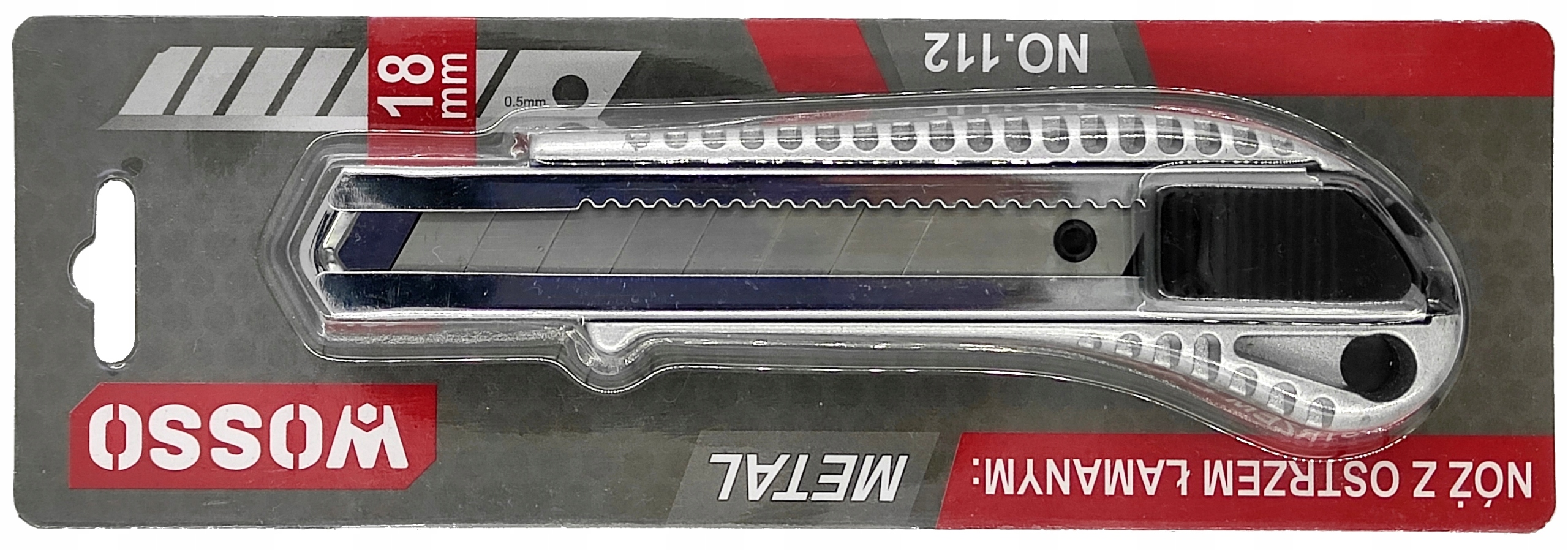 НОЖ ДЛЯ ОБОЙНЫХ МЕТАЛЛИЧЕСКИХ 18мм С ЛОМАТЫМ ЛЕЗВИЕМ 18мм 0,5мм №112