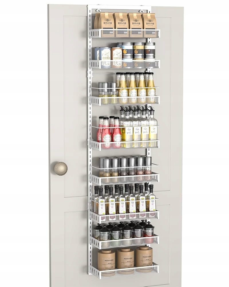 Универсальный организатор для хранения двери: 8-уровневой книжный шкаф для хранения кладовой подходит для многих раз. По сравнению с другими хранилищами в задней части двери наши полки для хранения на двери подходят для дверей толщины 3-7 см, расстояние между каждой корзиной можно отрегулировать в зависимости от потребностей, оборудованных съемными корзинами для облегчения соответствия более крупных предметов. Подходит для дома, кухни, кладовой, туалета или подвала, чтобы увеличить пространство для хранения